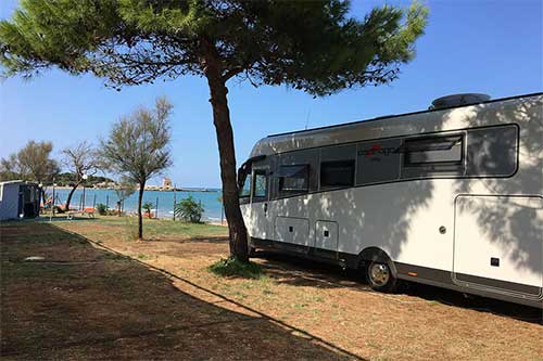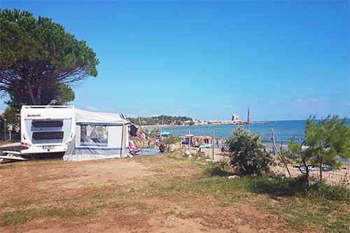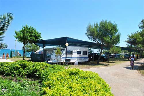 Piazzole fronte mare mq 90 con ombreggiante artificiale e vegetazione dotate di allaccio alla corrente elettrica di 10 ampere.