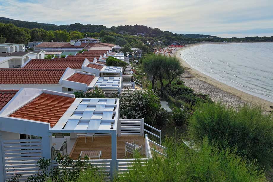 Dotato di 54 appartamenti di cui 8 bilo muratura fronte mare, 6 case mobili nuove a 15 mt dal mare, con vista mare, 2 nuove case mobili deluxe di cui 1 fronte mare, 8 villette bilo deluxe a 30 metri dal mare di nuovissima costruzione, 23 villini in muratura da 4/6 posti letto, situati a ridosso della macchia mediterranea.