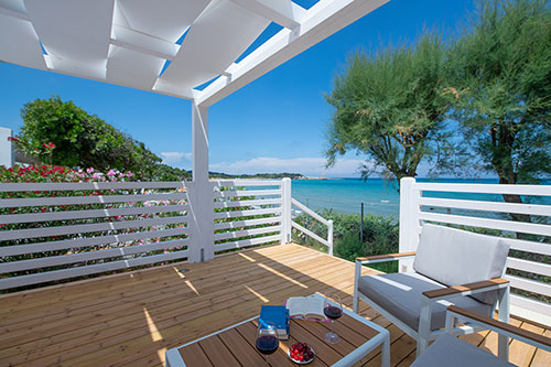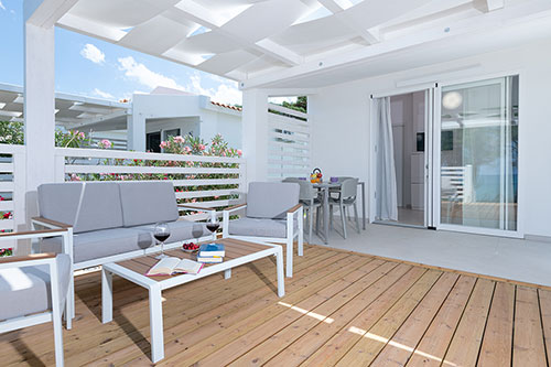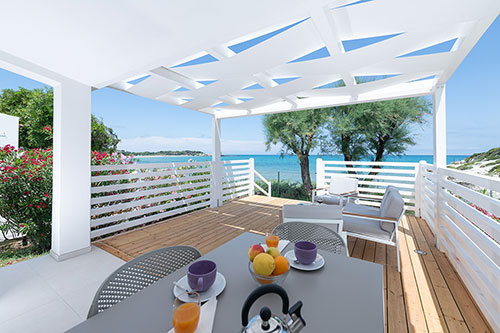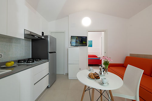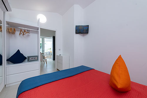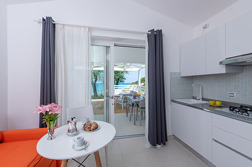 BILOCALE SUL MARE, recentemente ristrutturato, di mq 38. compreso di patio. Soggiorno con angolo cucina, dotato di stoviglieria, frigo, divano letto a castello, camera matrimoniale, cassaforte, aria condizionata in camera da letto, TV. Bagno con box doccia. Patio esterno attrezzato con divanetti e tavolo e sedie per pranzare fuori.